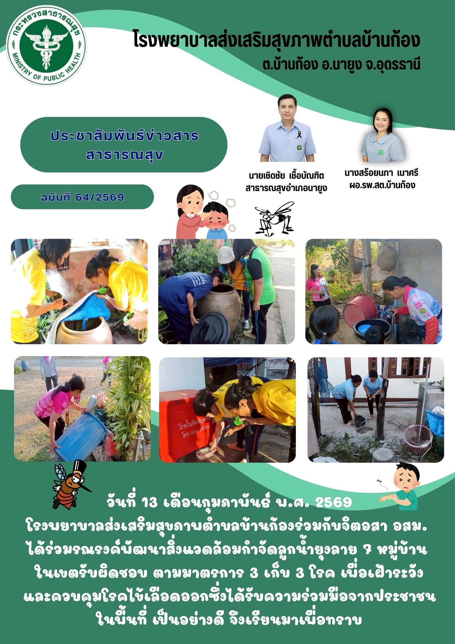 งานรณรงค์พัฒนาสิ่งแวดล้อมกำจัดลูกน้ำยุงลาย7 หมู่บ้าน ตำบลบ้านก้อง