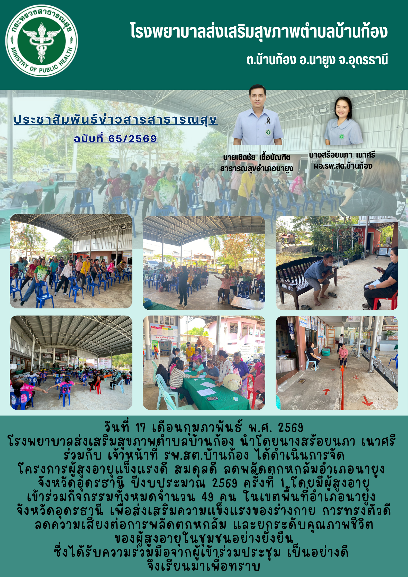 โครงการผู้สูงอายุแข็งแรงดี สมดุลดี ลดพลัดตกหกล้มอำเภอนายูง จังหวัดอุดรธานี ปีงบประมาณ 2569 ครั้งที่ 1