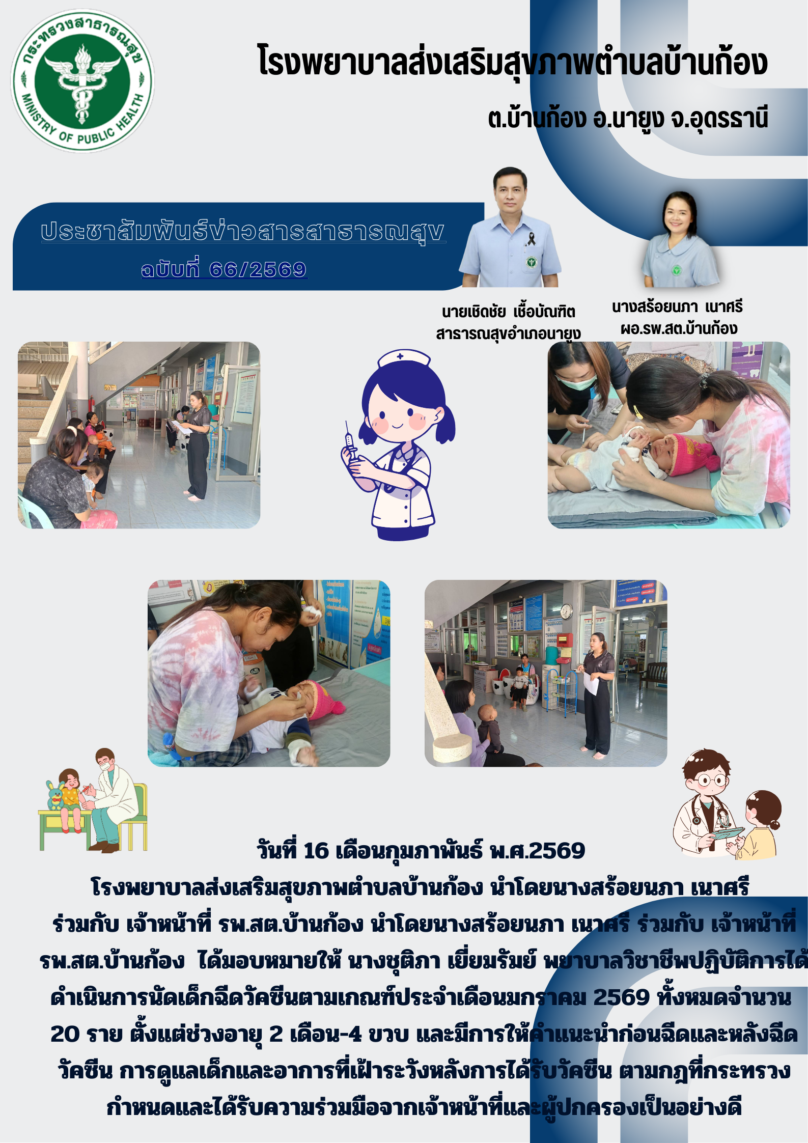 ให้บริการฉีดวัคซีนเด็ก ประจำเเดือนกุมภาพันธ์ 2569
