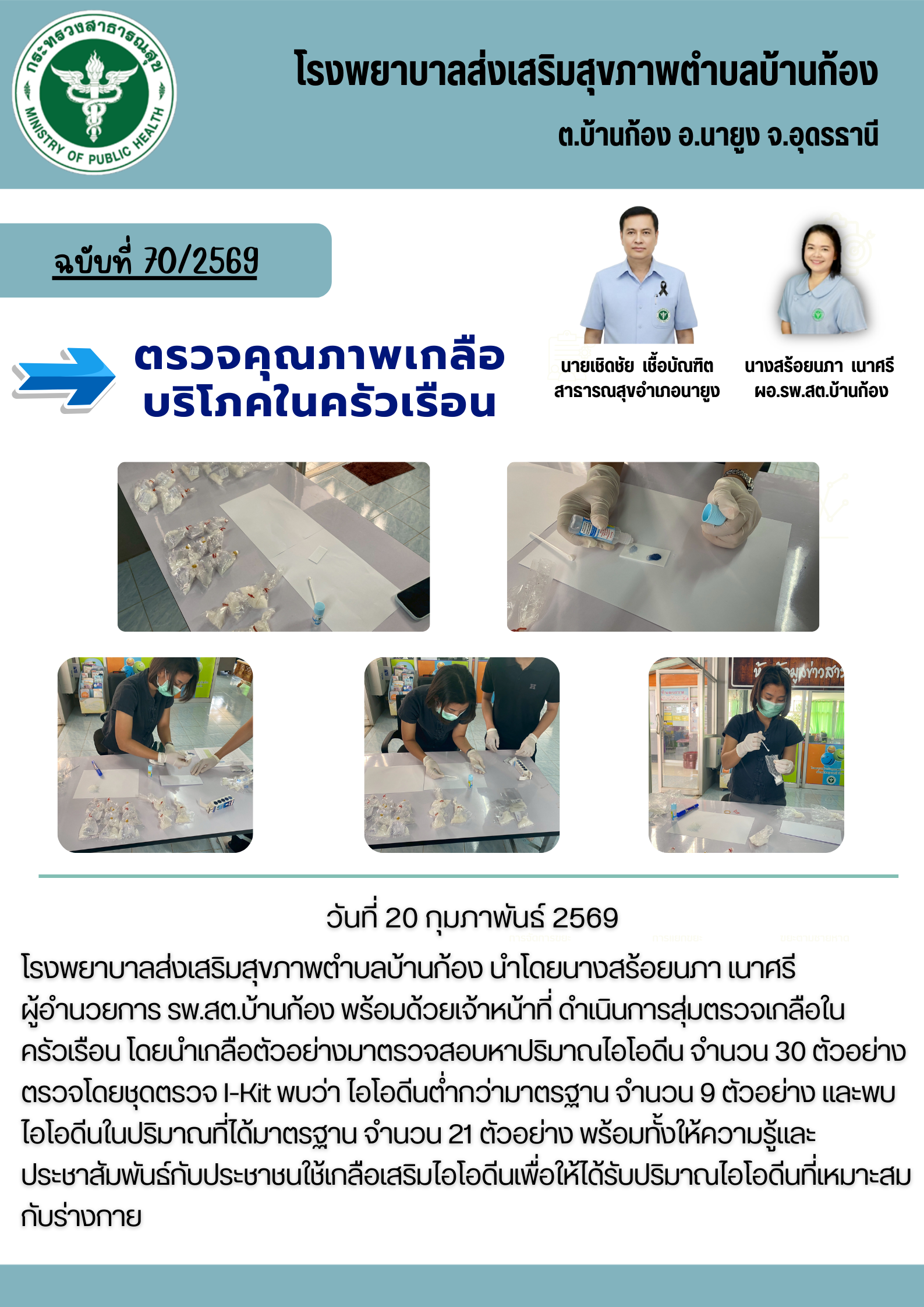 กิจกรรมตรวจความเค็มเกลือในครัวเรือน ตำบลบ้านก้อง