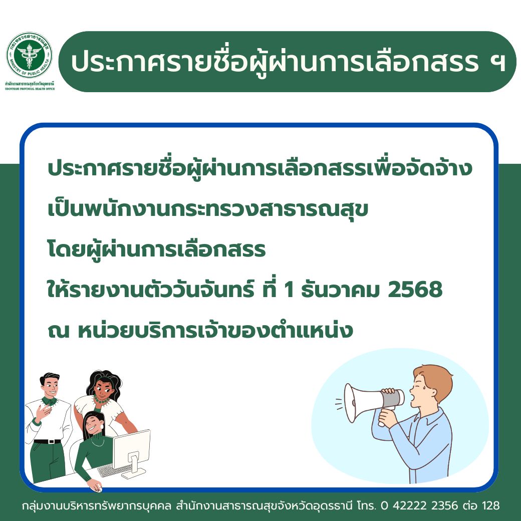 ประกาศรายชื่อผู้ผ่านการเลือกสรรเพื่อจัดจ้างเป็นพนักงานกระทรวงสาธารณสุข