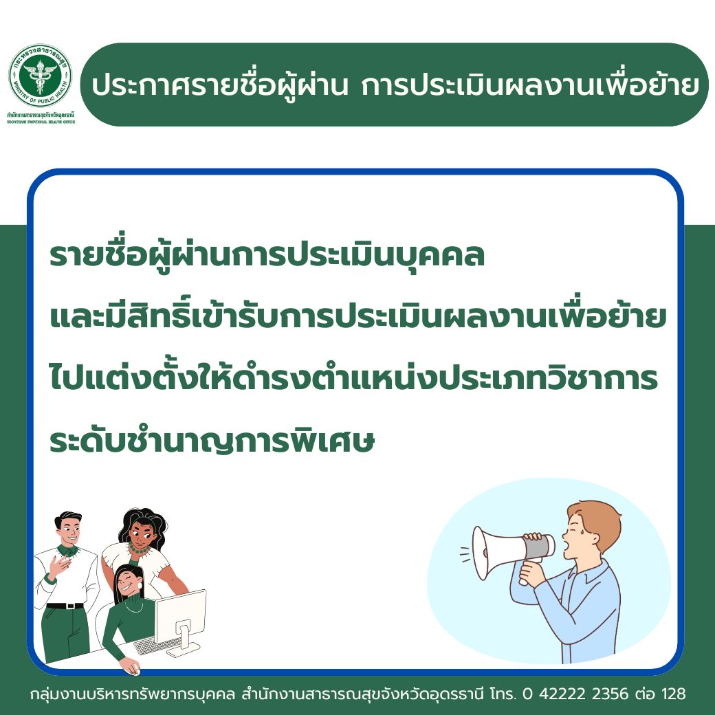 รายชื่อผู้ผ่านการประเมินบุคคลและมีสิทธิ์เข้ารับการประเมินผลงานเพื่อย้าย ไปแต่งตั้งให้ดำรงตำแหน่งประเภทวิชาการ ระดับชำนาญการพิเศษ