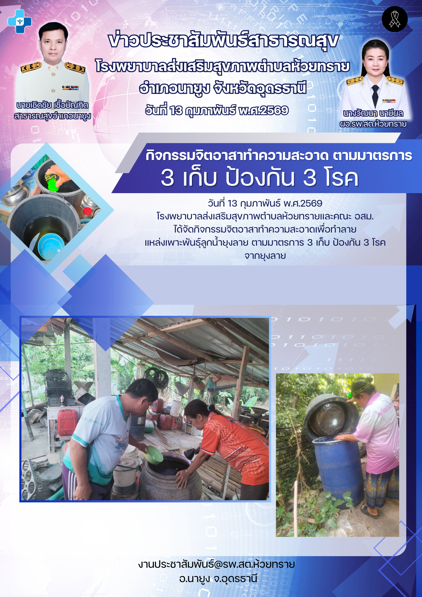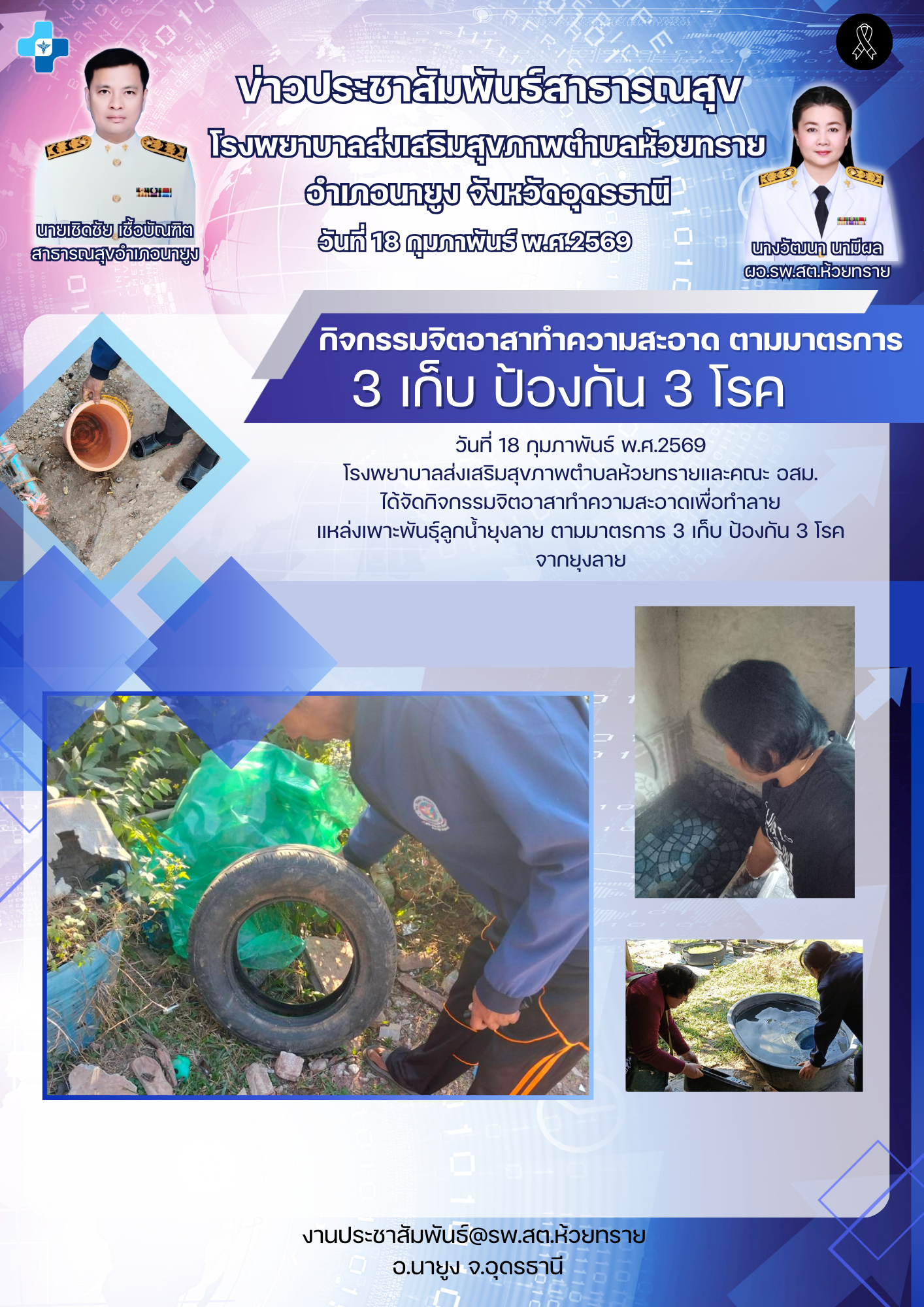กิจกรรมจิตอาสาทำความสะอาดเพื่อทำลาย แหล่งเพาะพันธุ์ลูกน้ำยุงลาย