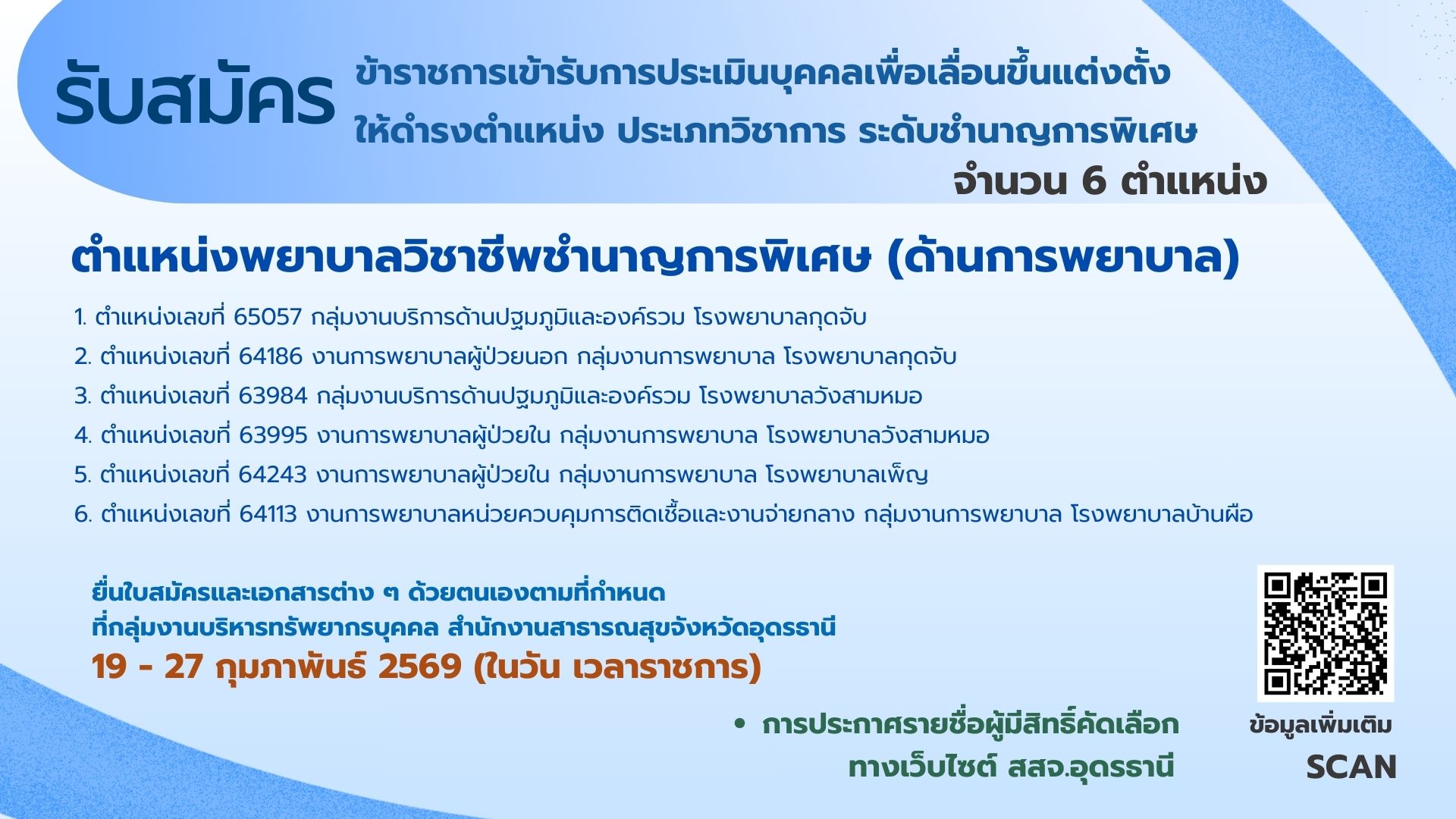 รับสมัครข้าราชการเข้ารับการประเมินบุคคลเพื่อเลื่อนขึ้นแต่งตั้งให้ดำรงตำแหน่ง ประเภทวิชาการ ระดับชำนาญการพิเศษ (6 ตำแหน่ง)