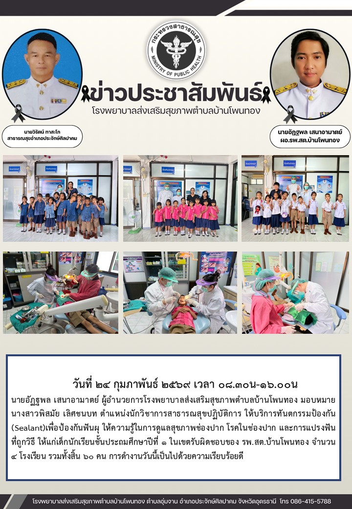 ให้บริการเคลือบหลุ่มร่องฟันนักเรียน ป.1