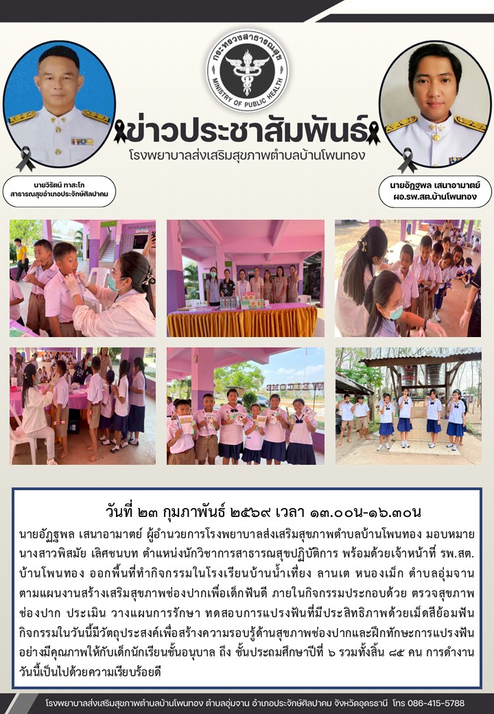 กิจกรรมสร้างเสริมสุขภาพช่องปากเพื่อเด็กฟันดี รร.บ้านน้ำเที่ยง ลานเต หนองเม็ก